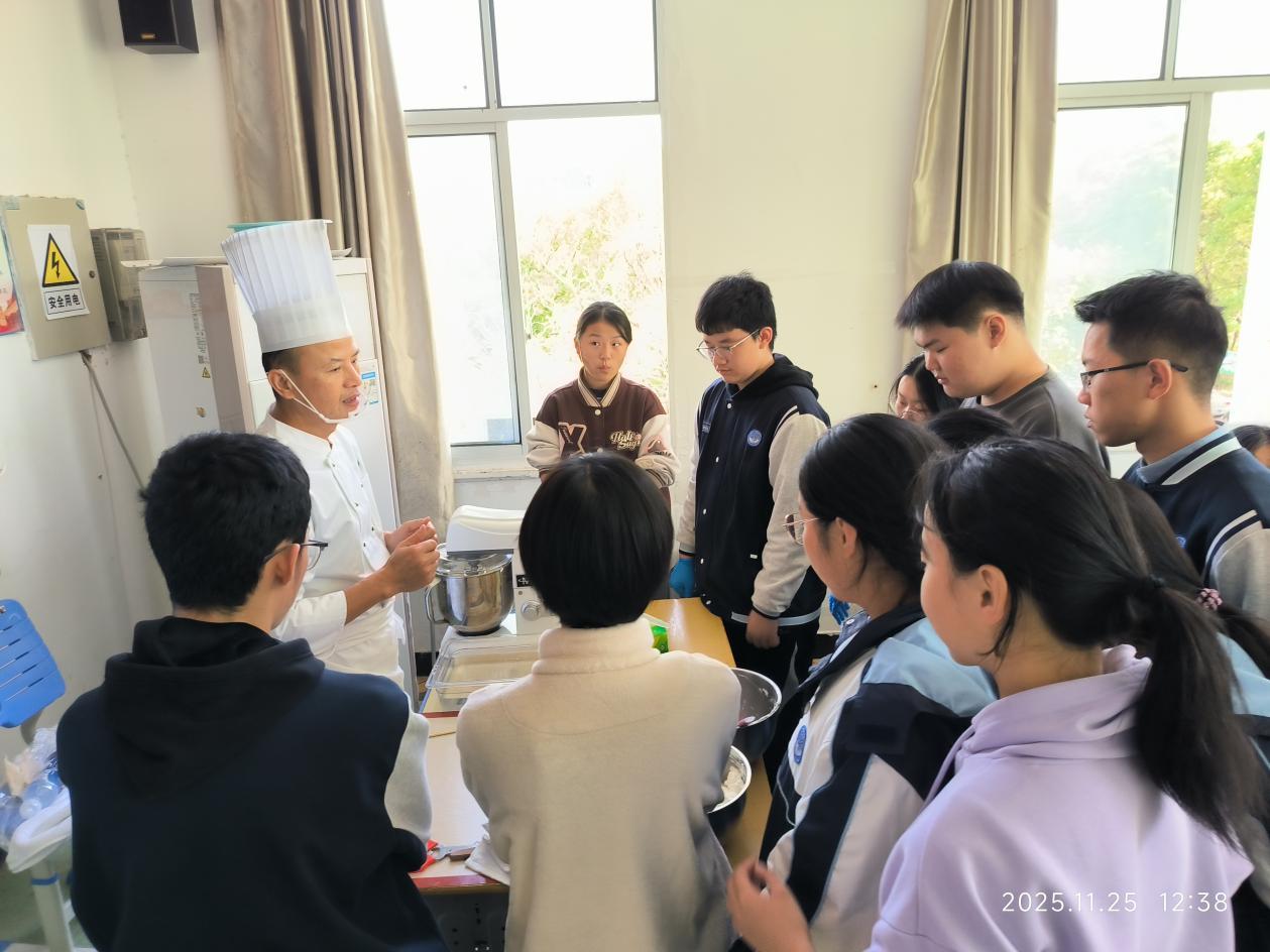 我校特邀江西省外语外贸大学西点大师、世界技能大赛比赛裁判郑春年先生莅临校园,为同学们带来精彩的法式糕点制作课程。郑大师以其专业的西点技艺,带领同学们深入体验法式烘焙的独特魅力。