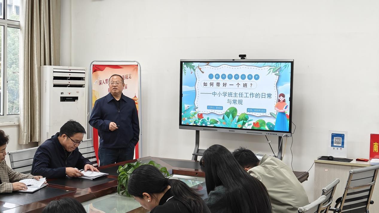 本次会议围绕班主任日常工作经验交流、近期重点工作情况通报以及下一步工作部署展开,重点聚焦班级管理中的常规细节,助力班主任有效解决日常工作中的实际问题。会议特别邀请教育教学联盟校南昌大学附属学校党委副书记、纪委书记夏侯宏作题为“中小学班主任工作的日常与常规”的专题讲座。夏侯书记的讲座及时、专业、精准、实用,立足实践,干货满满,为班主任优化日常管理提供了极具价值的指导,为学校德育提质筑牢根基。